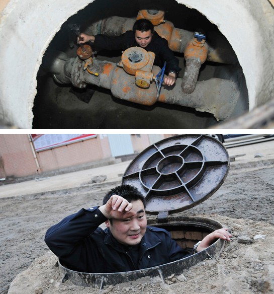 簡(jiǎn)單的午餐過(guò)后,胡站長(zhǎng)開(kāi)始了閥門井的巡視工作。當(dāng)掀開(kāi)位于濟(jì)陽(yáng)大街的主管道井蓋時(shí),一股熱浪襲來(lái)。“井內(nèi)溫度達(dá)到46度,到這里面就如同洗桑拿浴”胡站長(zhǎng)開(kāi)玩笑說(shuō)。等他從6米多深的管道井中上來(lái)時(shí),一頭的汗水。大的管道井雖然熱,但是內(nèi)部空間比較大,維修保養(yǎng)還比較容易,眾多小區(qū)開(kāi)發(fā)商自行建設(shè)的小管道井才是工作中的挑戰(zhàn),空間狹小,工作人員只能用特殊地體位更換閥門。